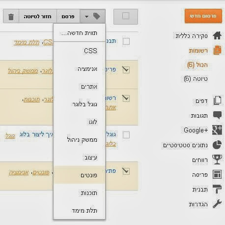 בממשק הבלוג ניתן ליצור, למחוק ולשנות את התוויות משני מקומות.